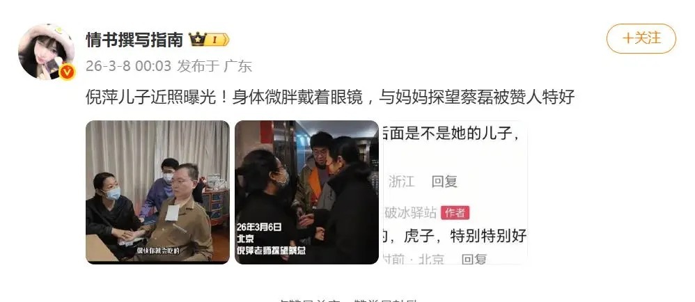 3日有网友爆料,67岁的倪萍岁的儿子虎子(大名王倪)在北京难得同框,他们一同去探望与渐冻症抗争的蔡磊。这位几乎被公众遗忘的“星二代”,凭借壮实如塔的身材以及全程低调温和的陪伴,瞬间在网络上刷屏。现场人员评价他“人特好”,这让无数网友直呼“没想到”。